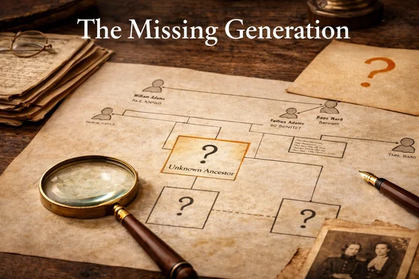 A three-generation gap, conflicting records, and a Pennsylvania dead-end hid the truth. Through immigration, church, and naturalization records, a complete lineage was reconstructed back to 1810.
